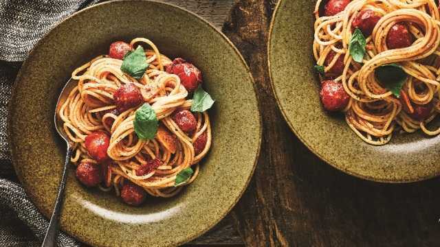 Παράλληλα, έχουμε βράσει τα ζυμαρικά 2΄ λιγότερο απ’ όσο αναγράφεται στη συσκευασία και, όπως στάζουν, τα ρίχνουμε στη σάλτσα.