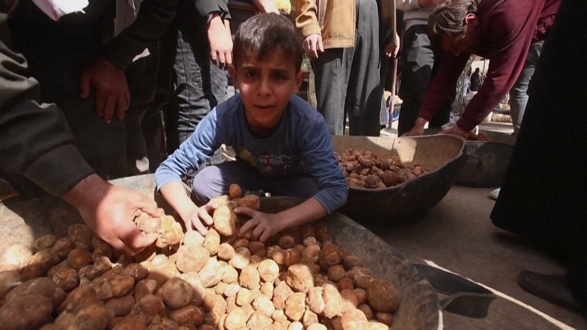 Σε μια συριακή αγορά, οι σακούλες είναι γεμάτες με τρούφες της ερήμου, μια εποχιακή λιχουδιά που οι άνθρωποι διακινδυνεύουν τη ζωή τους για να τη μαζέψουν, αψηφώντας τις επιθέσεις τζιχαντιστών και τις νάρκες.