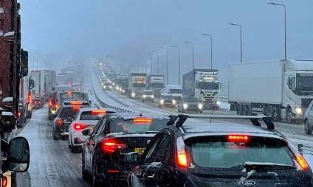 Οι οδηγοί άρχισαν να εγκατέλειπαν τα αυτοκίνητά τους στο δρόμο καθώς άρχισαν να πέφτουν έως και 40 εκατοστά χιονιού κατά τη διάρκεια της νύχτας, ενώ σε πολλές περιοχές οι θερμοκρασίες έφθασαν μέχρι και τους -16 βαθμούς Κελσίου. Εκατοντάδες αυτοκίνητα φωτογραφήθηκαν κολλημένα σε ένα τεράστιο μποτιλιάρισμα στον αυτοκινητόδρομο M62 στη 1.22 π.μ. της Παρασκευής, καθώς οι αυτοκινητιστές πάλευαν με τις σκληρές συνθήκες.