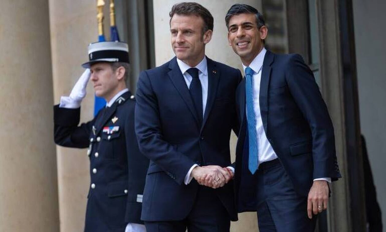 Ο Ρίσι Σούνακ έφτασε στο παλάτι των Ηλυσίων με ένα Range Rover με μια βρετανική σημαία να κυματίζει. Ο Εμανουέλ Μακρόν τον χαιρέτησε εγκάρδια με πολλές χειραψίες και ένα χτύπημα στην πλάτη πριν εγκαινιάσουν την πρώτη τους μακρά συνάντηση εργασίας, μετέδωσε ο Guardian.