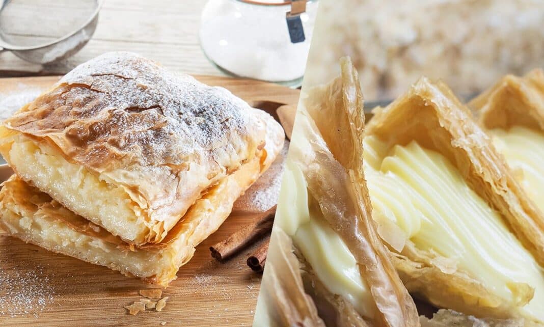 Τα τραγανά και βουτυρώδη τριγωνικά (σε σχήμα κώνου) αρτοσκευάσματα φύλλου συνήθως εμποτίζονται σε σιρόπι και γεμίζονται με κρέμα που φτιάχνεται συνήθως με συνδυασμό κρόκων αυγών, αλεύρι, βούτυρο, γάλα, ζάχαρη, βανίλια και κρέμα γάλακτος.