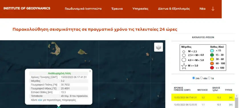 Ασθενής σεισμική δόνηση σημειώθηκε το πρωί της Δευτέρας στο θαλάσσιο χώρο στα ανοιχτά της Κρήτης, βόρεια του Ηρακλείου.