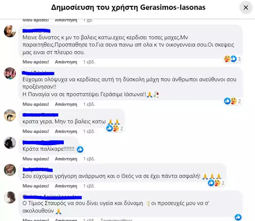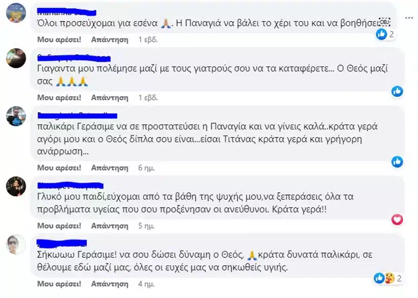Ενδεικτικό του κύματος αγάπης και συμπαράστασης στον νεαρό φοιτητή που δίνει μάχη για τη ζωή του είναι τα δεκάδες μηνύματα που δέχεται στο λογαριασμό του στο facebook με ευχές να καταφέρει να βγει υγιής από αυτή τη δύσκολη μάχη, σύμφωνα με το magnesianews.gr.