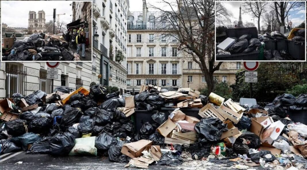 Οι επισκέπτες που θέλουν να θαυμάσουν τον Πύργο του Άιφελ μέσα από την εσπλανάντ του Τροκαντερό, βγαίνοντας από το μετρό πέφτουν επάνω σε έναν τοίχο από μαύρες σακούλες. Στο κέντρο της πόλης, τα άλλοτε ρομαντικά δρομάκια είναι σπαρμένα με κούτες, καφάσια, αποφάγια…