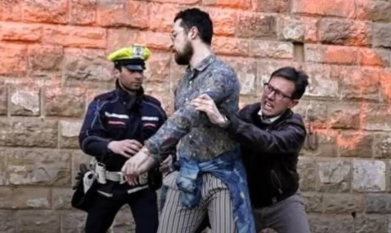 Ο δήμαρχος της Φλωρεντίας Ντάριο Ναρντέλα παρενέβη προσωπικά για να σταματήσει τους ακτιβιστές για το κλίμα καθώς ψέκαζαν με μπογιά την πρόσοψη του Palazzo Vecchio, έδρα του δημαρχείου, την Παρασκευή το πρωί.
