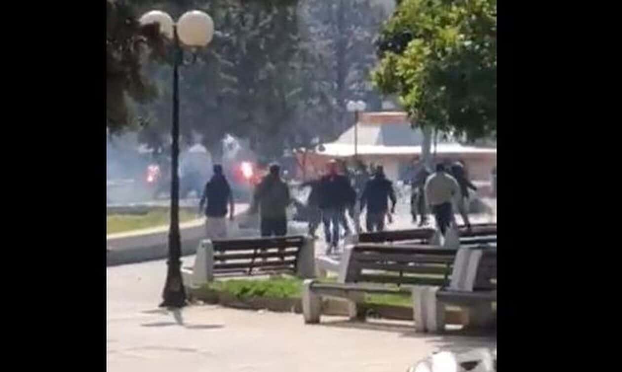 Άγριες συμπλοκές σημειώθηκαν στην πλατεία Σπάθας, απέναντι από το γήπεδο της Νεάπολης.
