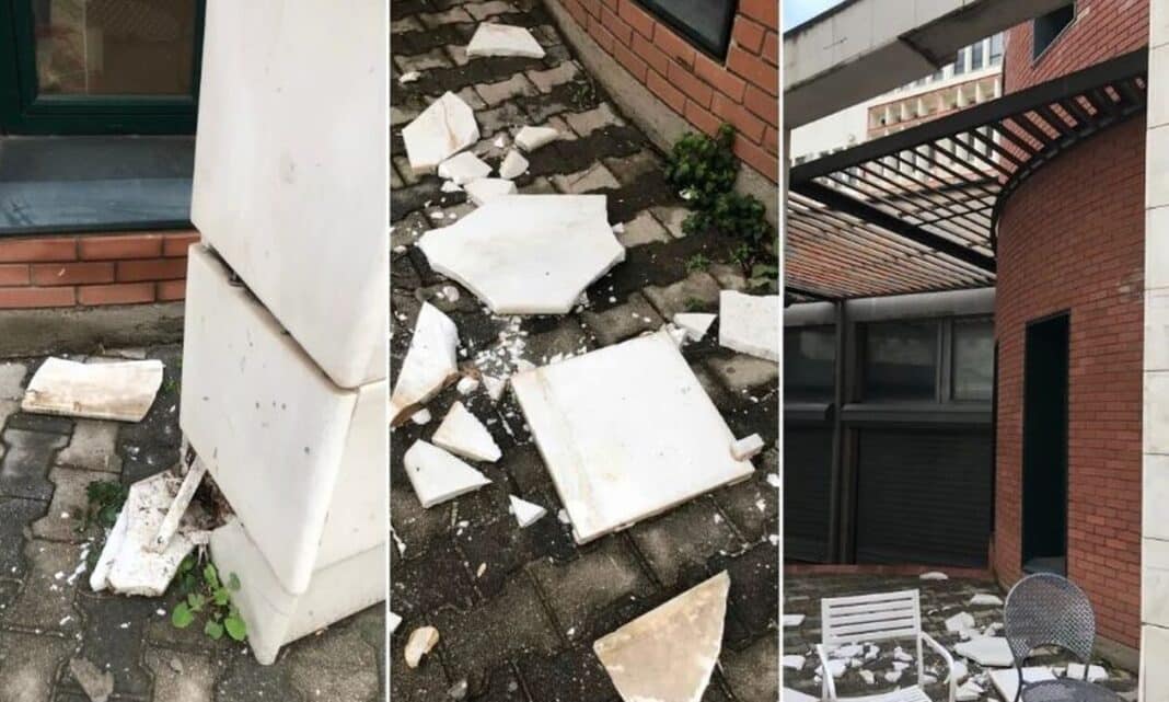 Γκρεμισμένο βρήκαν το υπόστεγο του κυλικείου του τμήματος Κτηνιατρικής στο Αριστοτέλειο Πανεπιστήμιο Θεσσαλονίκης, όπως καταγγέλλουν φοιτητές της σχολής, τονίζοντας ότι είναι θαύμα που δεν γκρεμίστηκε ενώ περνούσαν από κάτω φοιτητές.