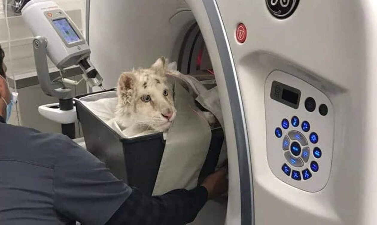 Οι αρμόδιοι και ειδικοί εξετάζουν ποια είναι η καλύτερη λύση για τη μικρή λευκή τίγρη, που βρέθηκε παράλυτη σε κάδο έξω από το Αττικό Ζωολογικό Πάρκο.