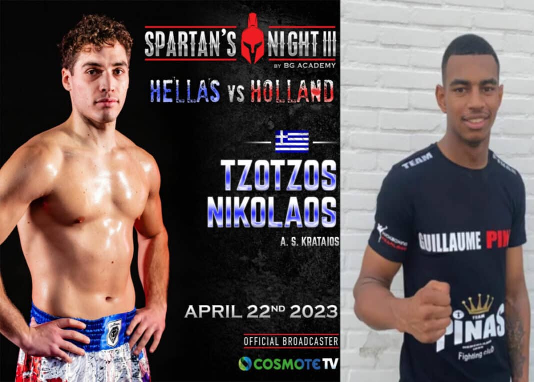 O Nικόλαος Τζώτζος θα κλείσει τη μαχητική βραδιά στα main event του SPARTAN’S NIGHT. Ο αθλητής του Α.Σ Κραταιός με προπονητή τον πατέρα του και παλιά μεγάλη δόξα των ρινγκ Κώστα Τζώτζο θα αντιμετωπίσει τον Ολλανδό Guillaume Pinas (Pinas Team) στην τελευταία των Ελληνο-ολλανδικών μαχών. Ο αγώνας είναι θα είναι στα 81κιλά, και ο 8ος …