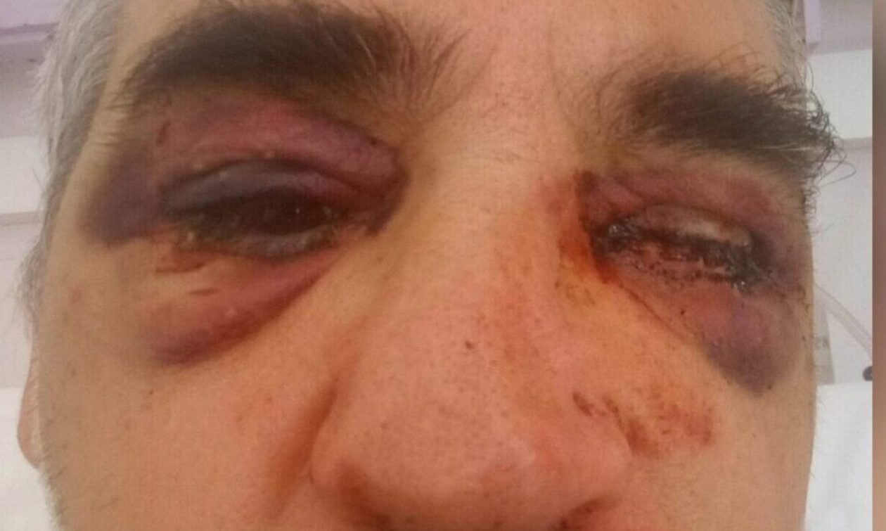 Οι φωτογραφίες που μοιράστηκε ο κ. Ψαρρός με την Telegraph δείχνουν σοβαρούς μώλωπες γύρω από τα μάτια του και πρήξιμο στο πρόσωπό του.