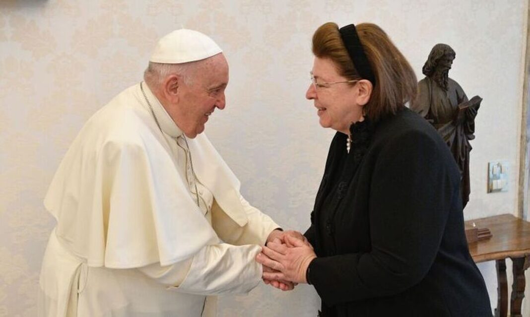 Δεκτή από τον πάπα Φραγκίσκο έγινε σήμερα το πρωί στο Βατικανό η Υπουργός Πολιτισμού και Αθλητισμού Λίνα Μενδώνη. Η συνάντηση, η οποία πραγματοποιήθηκε σε ιδιαίτερα θερμό κλίμα και είχε διάρκεια σαράντα πέντε λεπτά, προγραμματίστηκε έπειτα από πρόσκληση του Ποντίφικα, σε συνέχεια της δωρεάς των τριών θραυσμάτων του Παρθενώνα από τα μουσεία του Βατικανού, τα οποία επανενώθηκαν στο Μουσείο της Ακρόπολης την Παρασκευή 24 Μαρτίου.