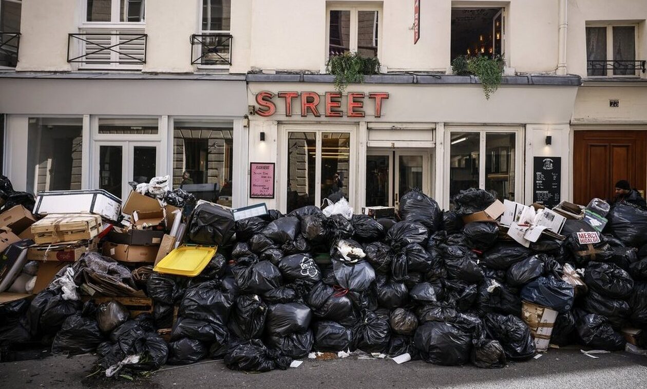 Γαλλία: Ο συνολικός όγκος των σκουπιδιών που παραμένουν στους δρόμους να είναι 7.000 τόνοι έναντι περισσότερων από 10.000 τόνων την περασμένη Παρασκευή, σύμφωνα με τη δημαρχία.