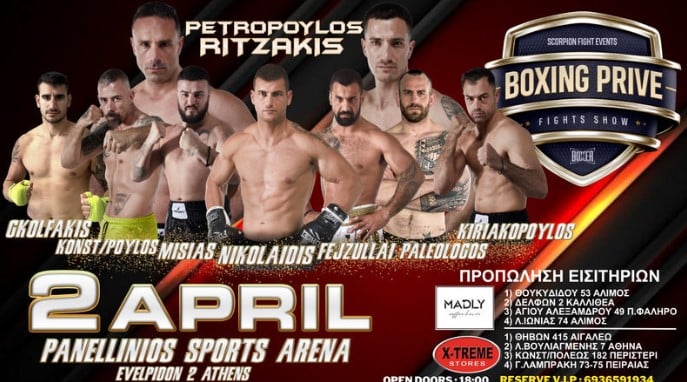 Στην τελική ευθεία μπαίνει το “SCORPION BOXING PRIVE” η διοργάνωση επαγγελματικής πυγμαχίας του Γιώργου Σαριδάκη, με 12 δυνατές αναμετρήσεις, με τους κορυφαίους μαχητές της χώρας που έρχεται στις 2 Απριλίου 2023 στο κλειστό γήπεδο Πανελληνίου. Ο Σαριδάκης υπόσχεται το “μεγαλύτερο μαχητικό υπερθέαμα επαγγελματικής πυγμαχίας με δυνατές αναμετρήσεις, φαντασμαγορικά εφέ, τα πιο διάσημα Ring Girls & …