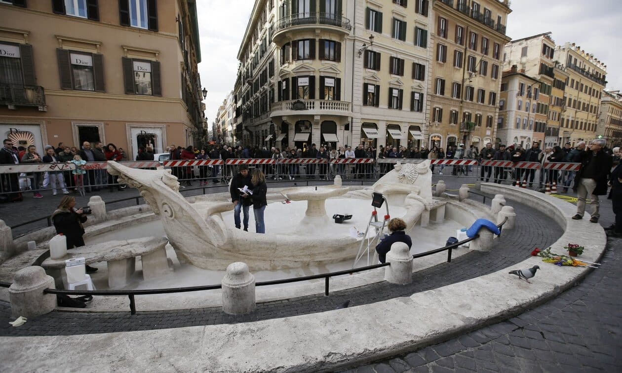 Ακτιβιστές έριξαν σήμερα το πρωί μαύρη μπογιά στο ιστορικό συντριβάνι της πλατείας Πιάτσα ντι Σπάνια της Ρώμης. Πρόκειται, ως γνωστόν, για ένα από τα κεντρικότερα σημεία της Αιώνιας Πόλης και το συγκεκριμένο σιντριβάνι σχεδιάστηκε και κατασκευάστηκε τον δέκατο έβδομο αιώνα.
