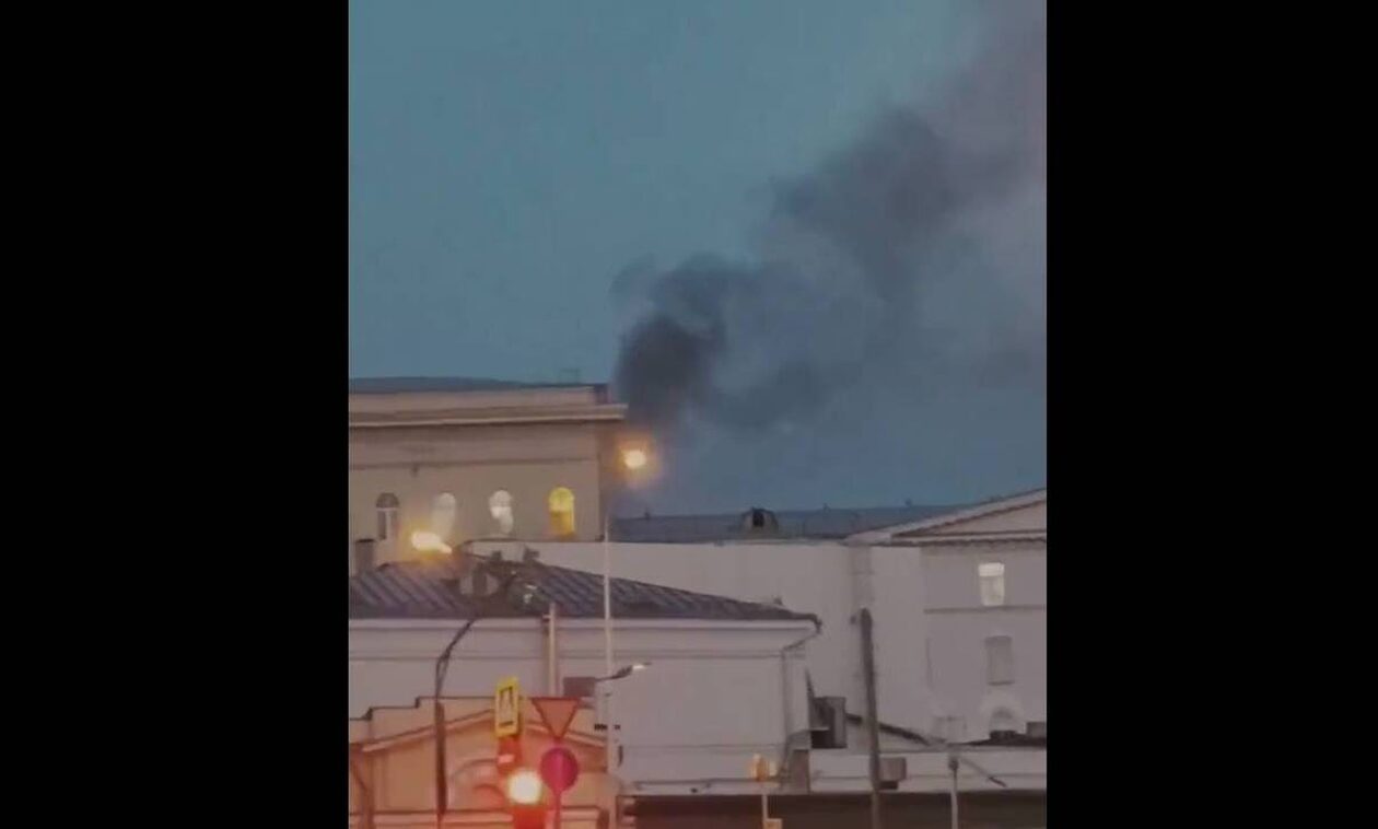 Σε βίντεο που δημοσιοποιήθηκε σε πλατφόρμες κοινωνικής δικτύωσης φαινόταν μια στήλη καπνού πάνω από το κτηριακό συγκρότημα του υπουργείου Άμυνας, που βρίσκεται κοντά στο Κρεμλίνο.