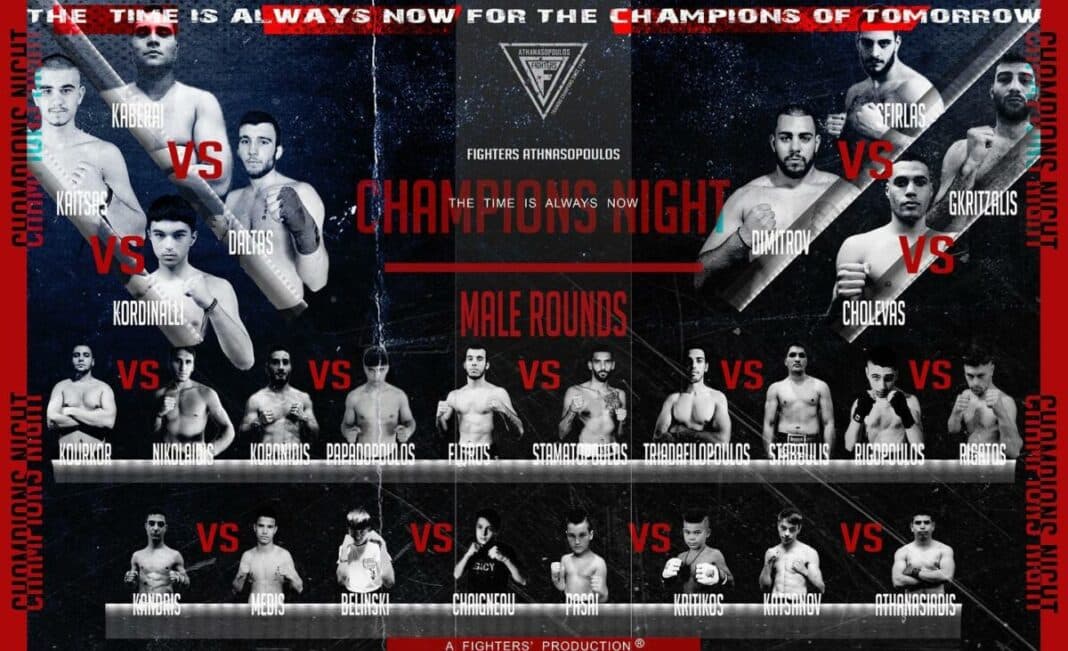 Η μακροβιότερη διοργάνωση Κικμπόξινγκ το Champions Night αισίως φτάνει αύριο Σάββατο την 67η έκδοση του. Μια πλούσια όπως πάντα κάρτα αγώνων, με δύο τετράδες στους άντρες, πολλά γυναικεία ζευγάρια αλλά και γερή δόση από νέο αίμα. Κλασικά στη Fighters Arena Μεθώνης 60, Πειραιάς. https://fb.watch/jMasHtY9qS/