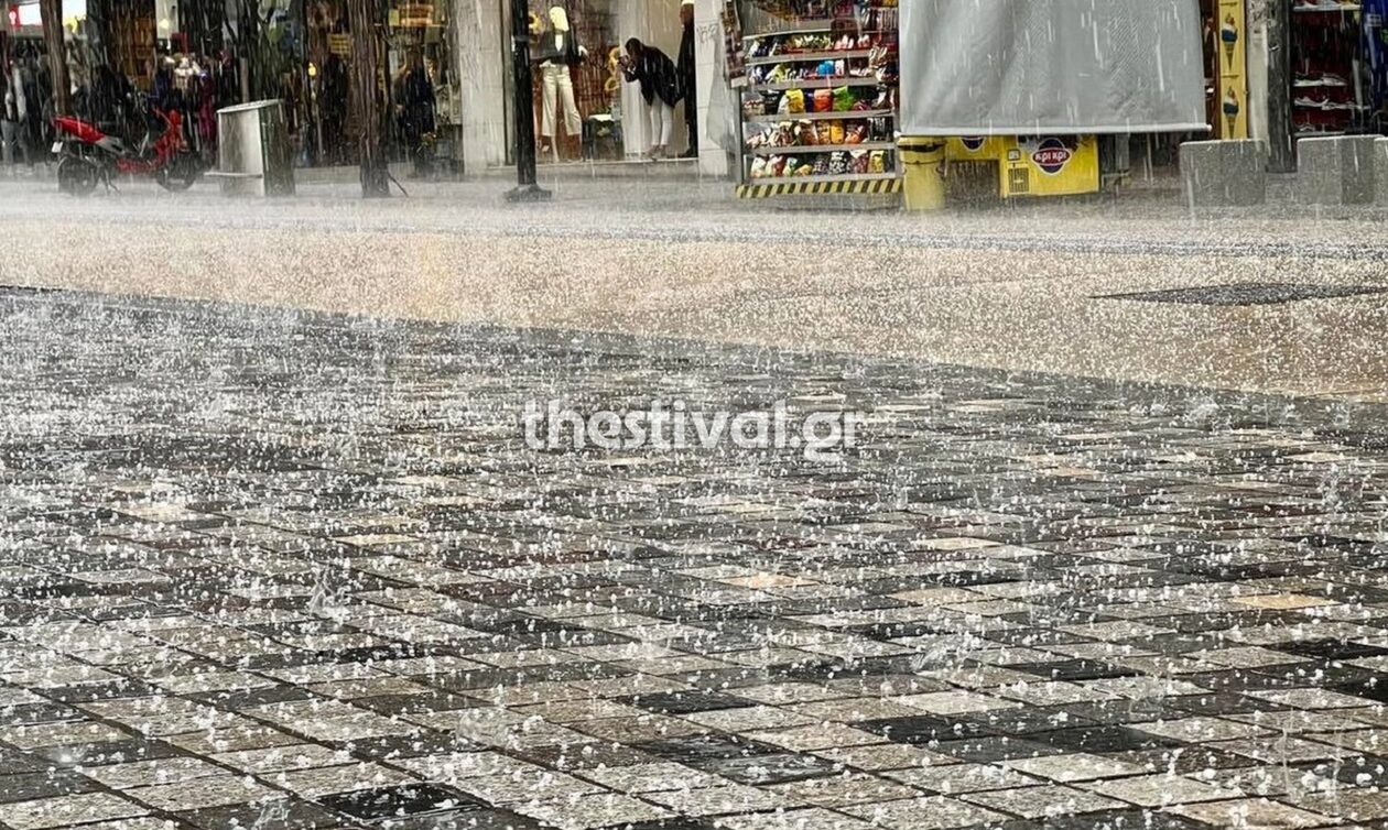 Μπορεί να έχουμε μπει στην άνοιξη και να απέχουμε μία ανάσα από το Πάσχα, ωστόσο στο κέντρο της πόλης το φαινόμενο συνοδεύτηκε από χαλαζόπτωση.