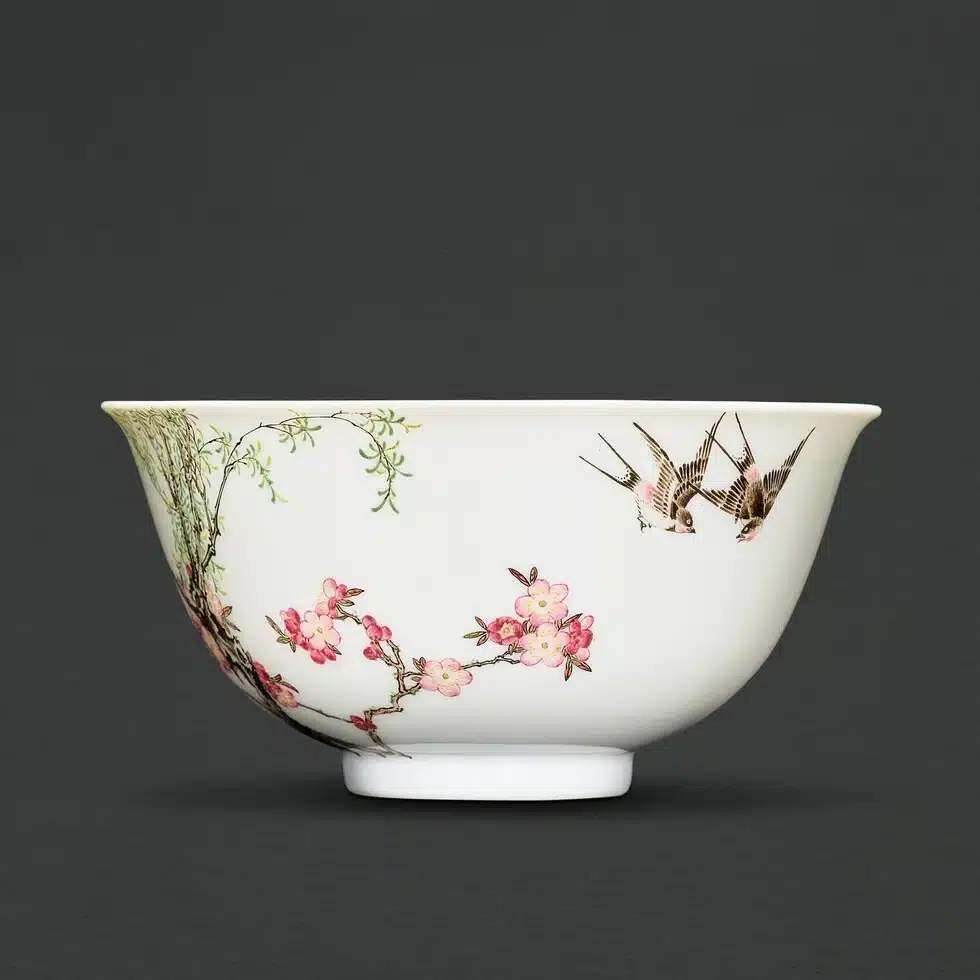 Πωλήθηκε 198,2 εκατομμύρια δολάρια Χονγκ Κονγκ (25,3 εκατομμύρια δολάρια) το περασμένο Σάββατο. Το σπάνιο μπολ απεικονίζει δύο χελιδόνια, μια ανθισμένη βερίκοκα και μια ιτιά. Το σχέδιο περιλαμβάνει, επίσης, ένα απόσπασμα από ποίημα που πιστεύεται ότι παραγγέλθηκε από τον προκάτοχο του Γιονγκζένγκ στη δυναστεία Μινγκ, τον αυτοκράτορα Γουανλί.