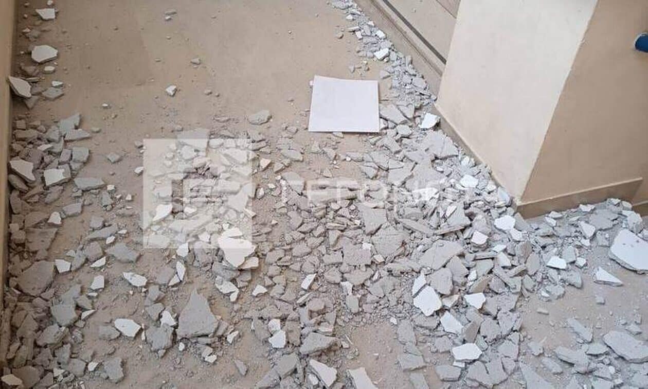 Στο 32ο Δημοτικό η καθαρίστρια πήγε προχθές νωρίς το πρωί στο σχολείο για να καθαρίσει και όταν μπήκε μέσα, είδε σοβάδες πεσμένους στην σκάλα. Πλησιάζοντας προς το σημείο για να διαπιστώσει τι συνέβη, άρχισαν να πέφτουν μεγάλα κομμάτια σοβάδων από την οροφή και λίγο έλειψε να τραυματιστεί.