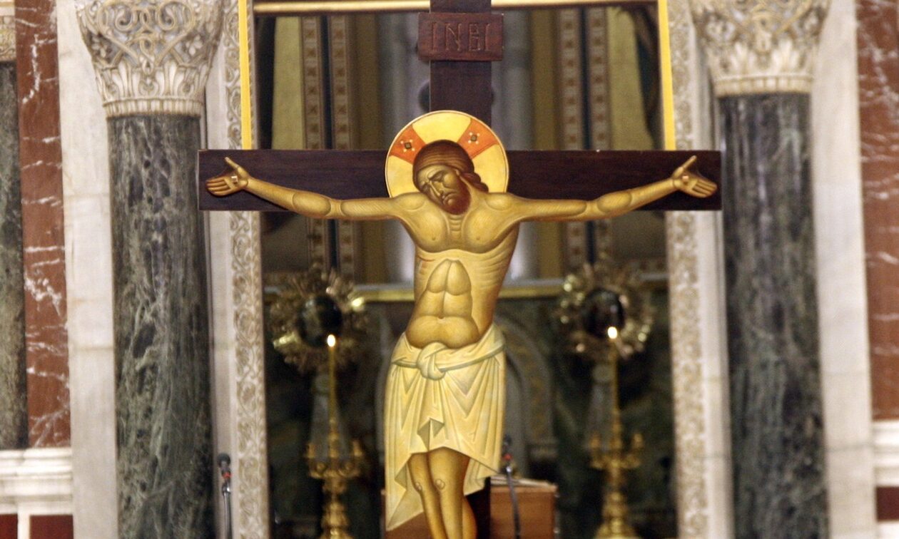 Σήμερα κρεμᾶται ἐπάνω στὸ ξύλο τοῦ Σταυροῦ, Ἐκεῖνος ποὺ ἐκρέμασε κατὰ τὴ δημιουργία τὴ γῆ ἐπάνω στὰ ὕδατα τῶν θαλασσῶν! Στέφανο κατασκευασμένο ἀπὸ ἀκάνθας περιβάλλεται τὴν κεφαλὴ ὁ Βασιλεὺς τῶν Ἀγγέλων! Ψευδὲς βασιλικὸ ἱμάτιο ἐνδύεται πρὸς ἐμπαιγμὸ Αὐτός, ποὺ ἐνδύει τὸν οὐρανὸ μὲ τὶς νεφέλες! Ῥάπισμα κατεδέχθη Ἐκεῖνος, ποὺ στὸν Ἰορδάνη ποταμὸ βαπτισθεὶς ὑπὸ Ἰωάννου τοῦ Προδρόμου ἠλευθέρωσε τὸν Ἀδὰμ καὶ τοὺς ἀπογόνους του ἀπὸ τὴ δουλεία τῆς ἁμαρτίας καὶ τὴν καταδυναστεία τοῦ Διαβόλου! Διὰ καρφίων ἐκαρφώθη στὸ Σταυρὸ ὁ Νυμφίος τῆς Ἐκκλησίας! Διὰ λόγχης ἐτρυπήθη στὴν πλευρὰ ὁ Υἱὸς τῆς Παρθένου! Προσκυνοῦμε τὰ Πάθη Σου, Χριστέ! Ἀξίωσέ μας νὰ ἰδοῦμε καὶ τὴν ἔνδοξη Ἀνάστασή Σου.