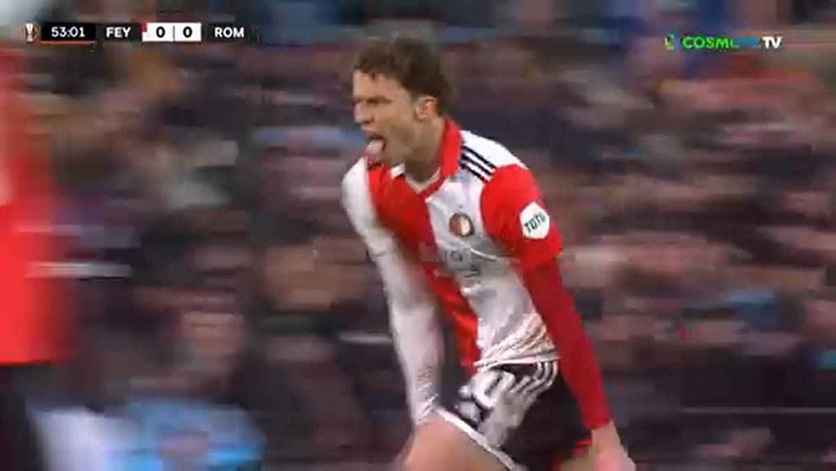 Mε καταπληκτικό σουτ του Βίφερ η Φέγενορντ ανοίγει το σκορ κόντρα στη Ρόμα.