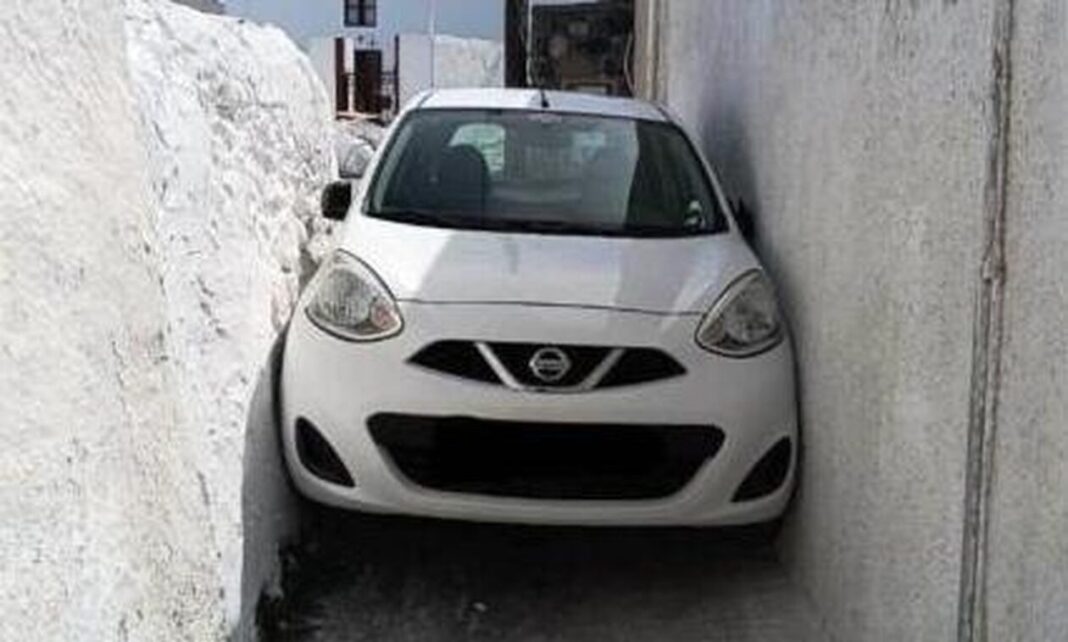 Απίστευτο περιστατικό στη Σαντορίνη: Αυτοκίνητο σφήνωσε σε στενό δρόμο – Η viral φωτογραφία