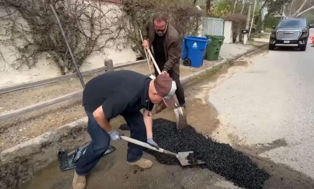 Ο Άρνολντ Σβαρτσενέγκερ επιδιορθώνει λακκούβα σε γειτονιά του Λος Άντζελες