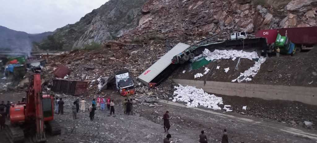 Η κατολίσθηση έγινε τις πρώτες πρωινές ώρες κατά μήκος του δρόμου ο οποίος συνδέει το Πακιστάν με το Αφγανιστάν.