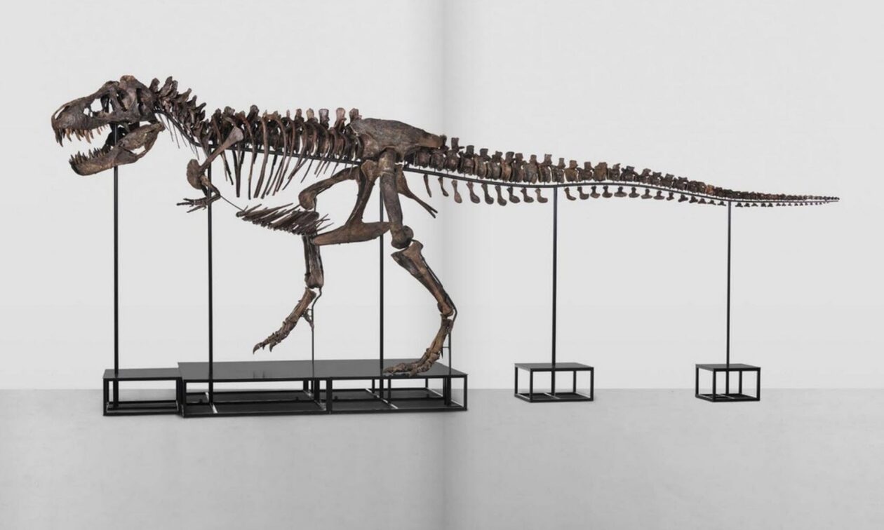 Ένας ολοκληρωμένος σκελετός Τυρρανόσαυρου Ρεξ (T-Rex) – ενός γιγαντόσωμου δεινοσαύρου που έζησε πριν από 67 εκατομμύρια χρόνια – πουλήθηκε την Τρίτη του Πάσχα σε δημοπρασία του οίκου Koller στη Ζυρίχη έναντι 5,5 εκατομμυρίων ελβετικών φράγκων (5,6 εκατ. ευρώ).