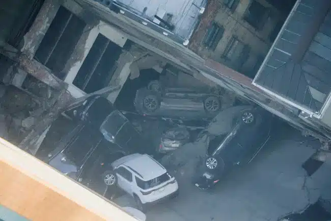 Εικόνες που κυκλοφορούν σε ιστότοπους κοινωνικής δικτύωσης δείχνουν αυτοκίνητα κάποια από τα οποία έχουν σωριαστεί το ένα πάνω στο άλλο ή έχουν αναποδογυρίσει και καπνό να αναδίδεται από το κτίριο που κατέρρευσε.