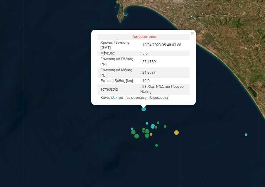 Nωρίτερα, στις 6:52 το πρωί καταγράφηκε σεισμός 3,9 Ρίχτερ, με εστιακό βάθος τα 24 χλμ. και επίκεντρο τα νότια – νοτιοδυτικά του Πύργου Ηλείας.