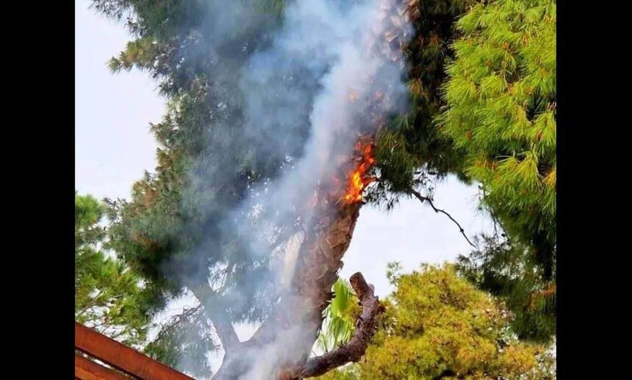 Σύμφωνα με ανάρτηση του Forecast Weather Greece στο Facebook, ο κεραυνός προκάλεσε μικρή φωτιά σε παρακείμενα δέντρα.