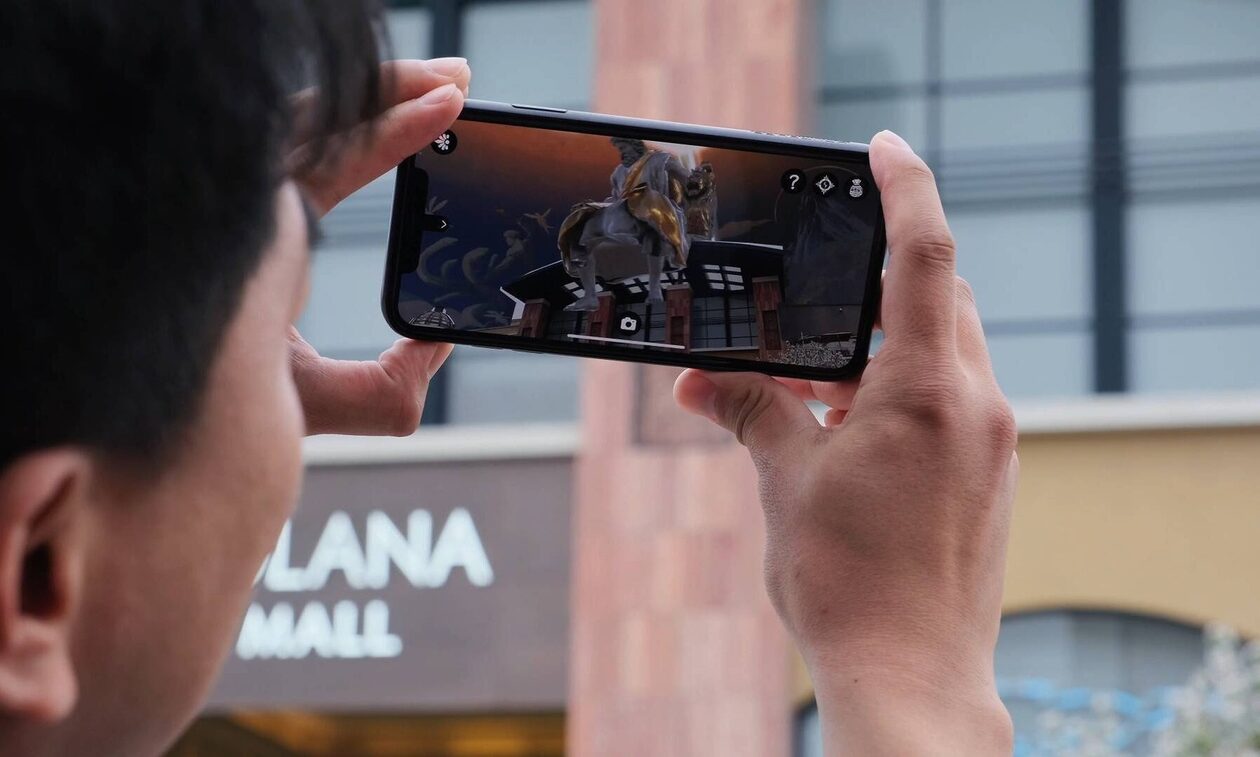 Μέσω γυαλιών, εικονικής πραγματικότητας και μίας πολυμεσικής εφαρμογής για κινητά τηλέφωνα, οι επισκέπτες της έκθεσης θα μπορούν να παρακολουθήσουν, εκτός των άλλων, τον Δία να αστράφτει στον θρόνο του πάνω από την πύλη εισόδου του δημοφιλούς πολυχώρου, τον φτερωτό Πήγασο να πετάει στα ουράνια πάνω από το συγκρότημα κινηματογραφικών αιθουσών και τον Διόνυσο να κερνάει ελληνικό κρασί στους επισκέπτες των καταστημάτων εστίασης.