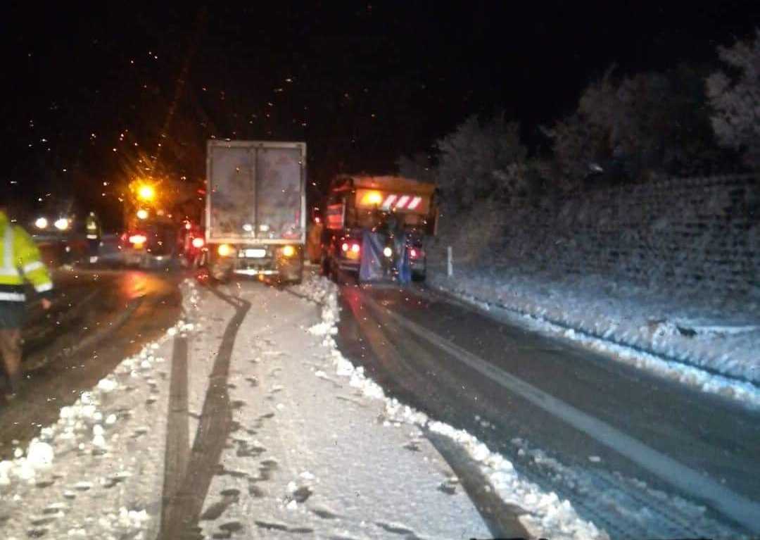Από τη συνεχή χιονόπτωση κόλλησε στο χιόνι μια νταλίκα, στο ύψος του Ελευθεροχωρίου, στο ρεύμα προς Ηγουμενίτσα και αυτή την ώρα τα εκχιονιστικά μηχανήματα της Περιφέρειας Ηπείρου προσπαθούν να απομακρύνουν τη νταλίκα από το σημείο.