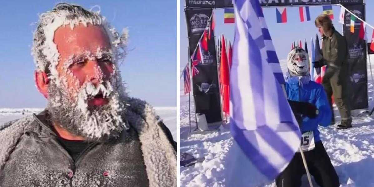 Τερμάτισε με την ελληνική σημαία στο χέρι – Έλληνας ο πρώτος νικητής του μαραθωνίου στον Βόρειο Πόλο