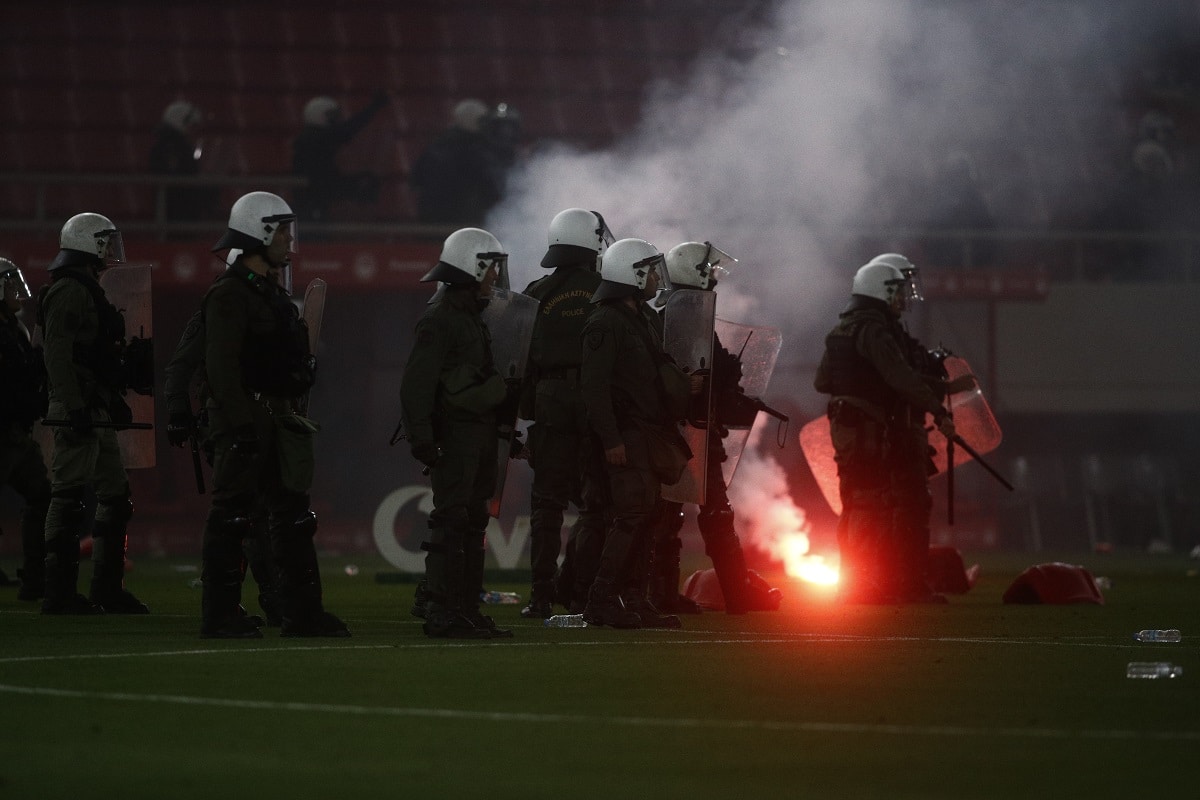 Με τη λήξη του ματς ο κόσμος του Ολυμπιακού δεν άντεξε την ήττα και επιτέθηκε σε αστυνομία και παίκτες της ΑΕΚ με αντικείμενα και κροτίδες. Εικόνες που δεν αρμόζουν σημειώθηκαν με τη λήξη του ματς στο «Γ.Καραϊσκάκης». Συγκεκριμένα μετά την επίτευξη του δευτέρου γκολ της ΑΕΚ με την είσοδο Μαρινάκη. Μετά και το 3-1 οπαδοί …