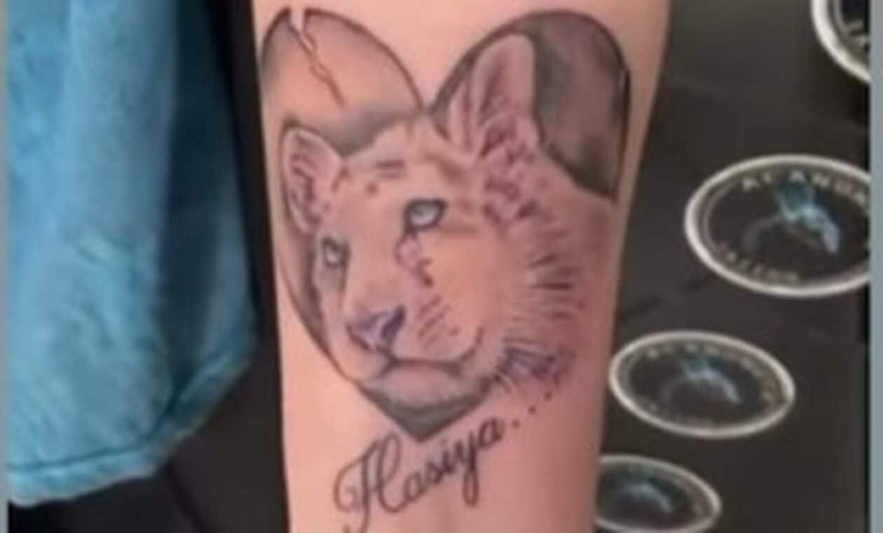 «Είμαστε εδώ για τη Χασίγια, το λευκό τιγράκι που δεν υπάρχει πια στη ζωή. Αυτό το τατουάζ με πόνεσε πολύ, αλλά δεν συγκρίνεται με τον πόνο που είχε αυτό το ζώο», εξηγεί στο βίντεο που ανέβασε.