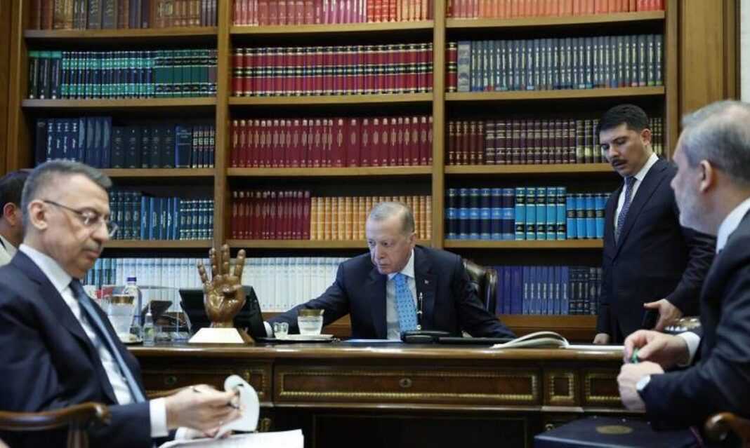 Η φωτογραφία απαθανάτισε τον Τούρκο Πρόεδρο στο γραφείο του κατά τη διάρκεια της βιντεο-συνομιλίας με τον Ρώσο ομόλογό του