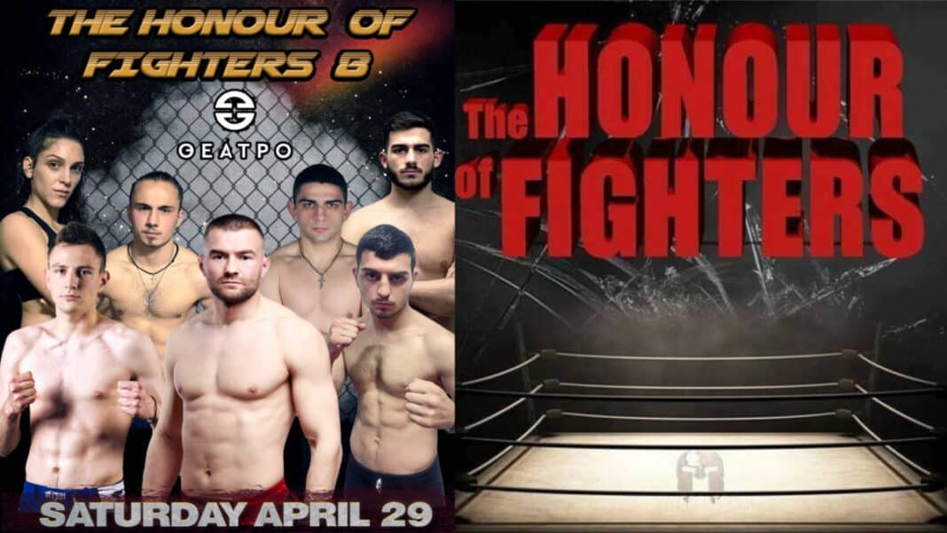 Το Honour of Fighters έρχεται για 8η φορά, τώρα στις 29 Απριλίου στο «Θέατρο» (τέρμα 1ης Ιουλίου) στη Δράμα, με ώρα έναρξης 19:00. Δείτε αναλυτικά τα ζευγάρια μέσα από τις αφίσες προώθησης της διοργάνωσης και το promo video του main event Λεονάρδος Σίνης VS Δημήτρης Βορδοναράκης
