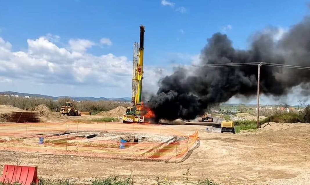 Σύμφωνα με τις ίδιες πηγές το ατύχημα έγινε υπό άγνωστες ακόμα συνθήκες την ώρα που ο γερανός ξεφόρτωνε τους μεταλλικούς σωλήνες σε ένα άλλο σημείο, το οποίο βρισκόταν πολύ κοντά στα καλώδια της ΔΕΗ, με αποτέλεσμα να τα ακουμπήσει και από την ηλεκτροπληξία να προκληθεί η φωτιά.