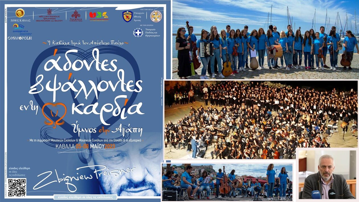 Συνολικά χίλιοι μαθητές γυμνασίων από 24 μουσικά σχολεία από ολόκληρη την Ελλάδα, τέσσερα σχολεία από την Κύπρο, την Ισπανία και την Ιταλία, διακεκριμένοι σολίστ της βυζαντινής και δημοτικής μουσικής παράδοσης, εξέχοντες πανεπιστημιακοί καθηγητές, ερευνητές και ακαδημαϊκοί συμπράττουν σε αυτήν την μεγάλη διοργάνωση που ξεκινάει αύριο Παρασκευή 5 Μαΐου και ολοκληρώνεται τη Δευτέρα 8 Μαΐου, με τη συνδρομή της Περιφέρειας Ανατολικής Μακεδονίας και Θράκης, της Ιεράς Μητρόπολης Φιλίππων Νεαπόλεως και Θάσου, του Μουσικού Σχολείου Καβάλας, του Δημοτικού Ωδείου Καβάλας και του ΔΗ.ΠΕ.ΘΕ. Καβάλας.