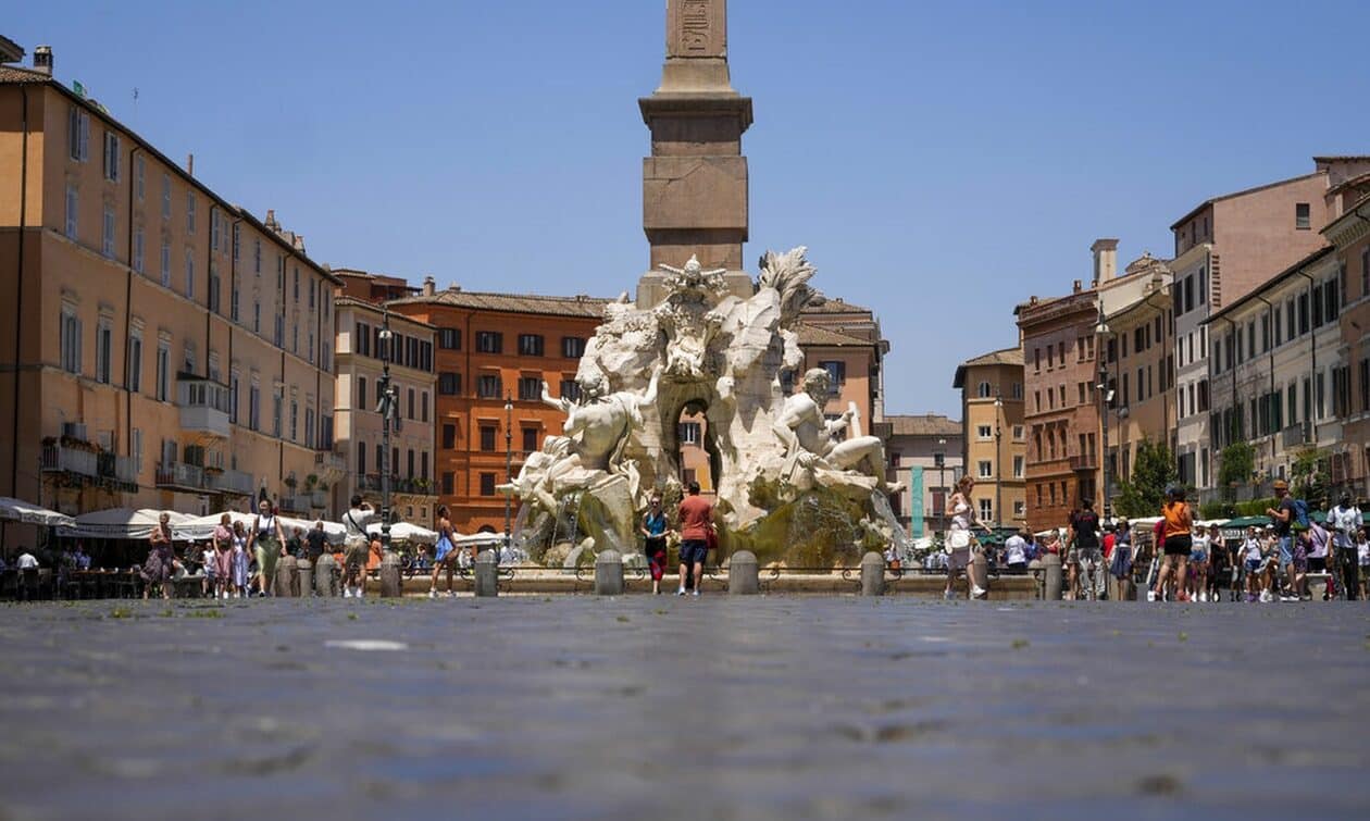 Με μαύρη μπογιά έβαψαν ακτιβιστές της Ultima Generazione τα νερά του διάσημου σιντριβανιού των Τεσσάρων Ποταμών στην εμβληματική Πιάτσα Ναβόνα της Ρώμης