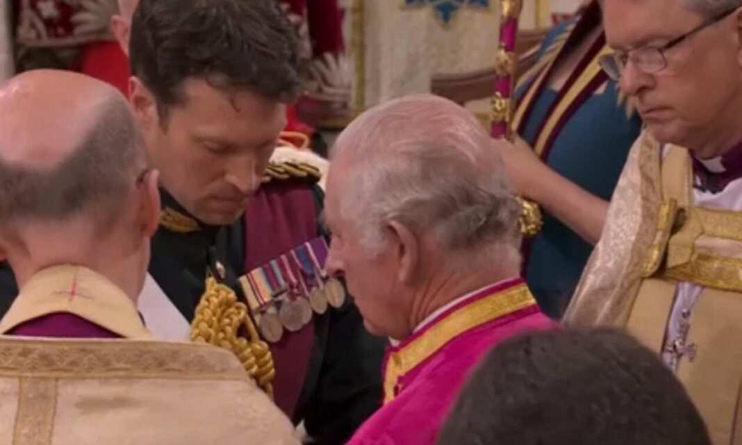 Ο λόγος για τον 39χρονο Ταγματάρχη, Τζόναθαν Τόμσον, του 5ου Βασιλικού Συντάγματος του τάγματος της Σκωτίας, που βρέθηκε στο επίκεντρο χθες καθώς βρισκόταν μεταξύ του Καρόλου και των Pages of Honor κατά τη διάρκεια της ιστορικής τελετής.