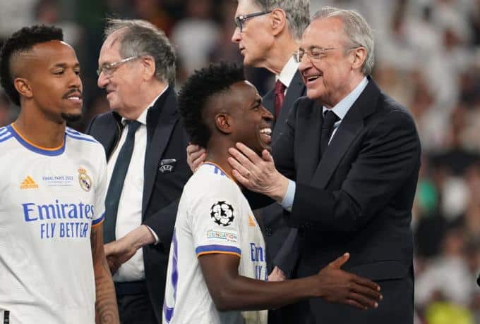 Ο πρόεδρος της Ρεάλ Μαδρίτης, Φλορεντίνο Πέρεθ αποθέωσε τον Βινίσιους και είπε ότι «είναι ο καλύτερος παίκτης στον κόσμο στην θέση του». Ο ισχυρός άνδρας της Ρεάλ Μαδρίτης μετά την κατάκτηση του κυπέλλου Ισπανίας, δήλωσε: «Ο Βινίσιους είναι ο καλύτερος παίκτης στον κόσμο στη θέση του. Πρέπει να υπερασπιστούμε τους παίκτες που παράγουν κάτι ιδιαίτερο …