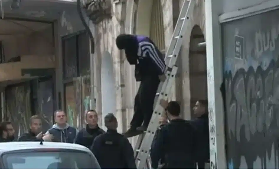 Σκηνές ταινίας δράσης θύμιζε το πρωί η σε απευθείας μετάδοση καταδίωξη δύο κουκουλοφόρων που πηδούσαν από ταράτσα σε ταράτσα. Ο ένας συνελήφθη λίγο πριν από τις 07:00, όταν προσπάθησε να διαφύγει, ενώ ο δεύτερος για περίπου μισή ώρα ακόμη παρέμενε πάνω μία σε ταράτσα, δίπλα σε εκκλησία.