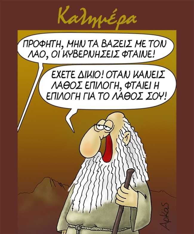 O Αρκάς και σήμερα Τετάρτη μας λέει την καλημέρα του με ένα προεκλογικό μήνυμα στο οποίο πρωταγωνιστεί ο σοφός Προφήτη