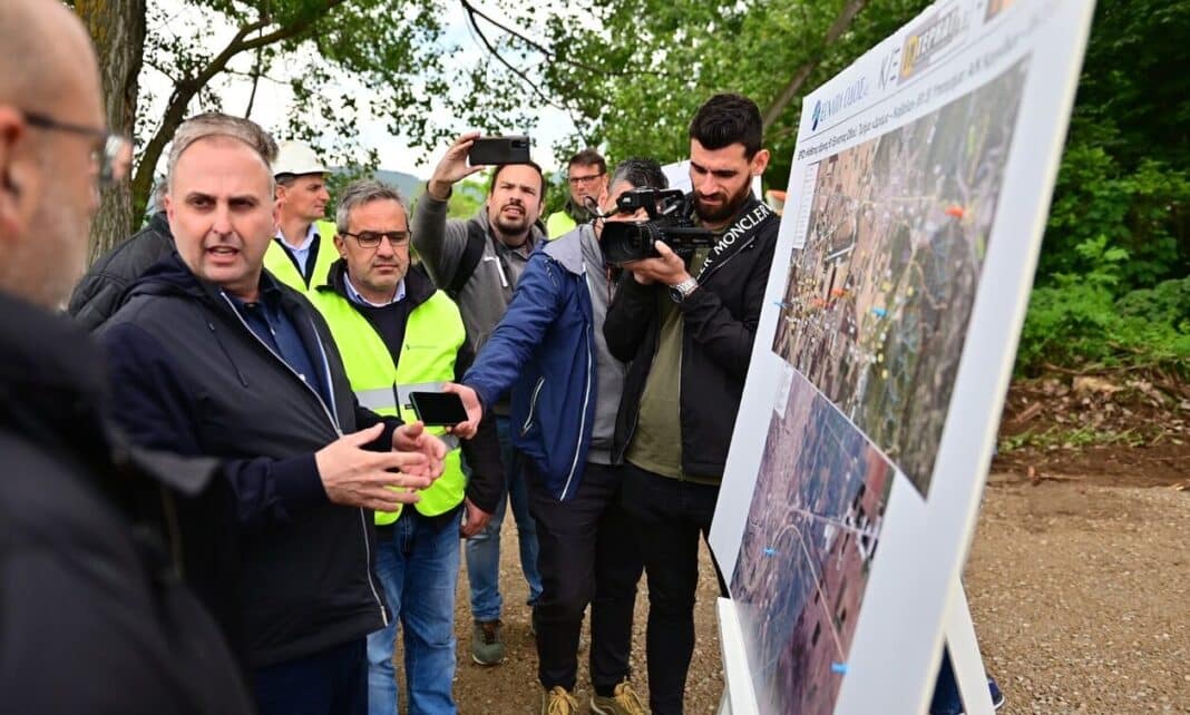 Ο κ. Καραγιάννης επισκέφθηκε, επίσης, το εργοτάξιο στις Κρηνίδες όπου ξεκινάει η κατασκευή του τμήματος «Α/Κ Κρηνίδων – Ι/Κ Σταυρού» του κάθετου άξονα «Σέρρες – Δράμα – Καβάλα» (Ε-61).