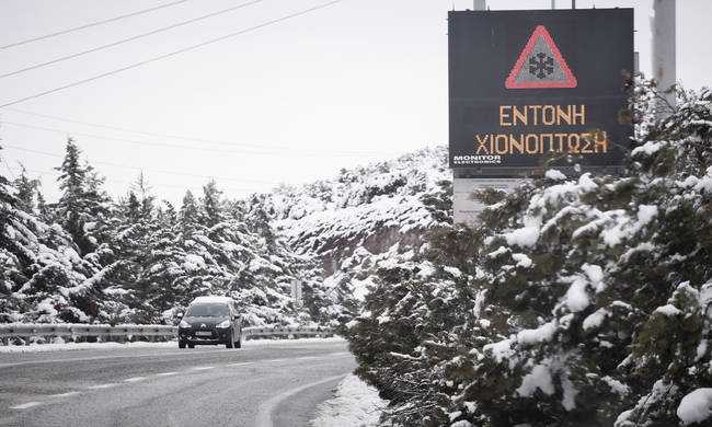 Σφοδρή είναι επίσης η χιονόπτωση και στην Ιονία Οδό και ιδιαίτερα στο ύψος της Φιλιππιάδας