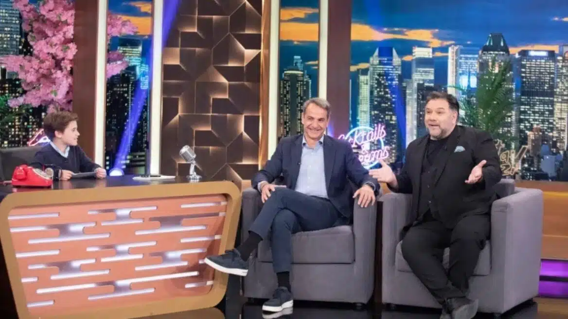 Έξι ημέρες πριν από τις εκλογές της 21ης Μαΐου 2023 ο Κυριάκος Μητσοτάκης ήταν καλεσμένος του Γρηγόρη Αρναούτογλου στην εκπομπή «The 2Night Show» στον ΑΝΤ1.