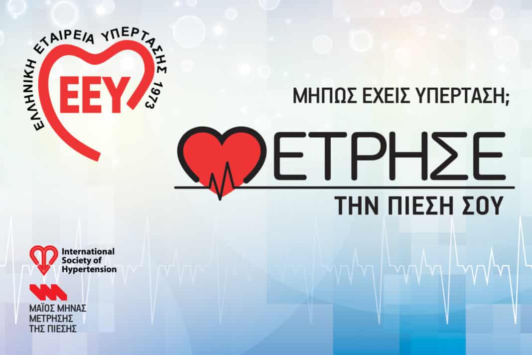 Τα παραπάνω στοιχεία έδωσε στη δημοσιότητα η Ελληνική Εταιρεία Υπέρτασης με αφορμή την παρουσίαση του προγράμματος ΜΜΜ (Μάιος Μήνας Μέτρησης) στην Ελλάδα. Η 17 η Μαΐου είναι η Παγκόσμια Ημέρα Υπέρτασης με εκδηλώσεις και δραστηριότητες σε πολλές χώρες. Η διάγνωση γίνεται «μόνο» με τη μέτρηση της πίεσης. Η αξιόπιστη διάγνωση απαιτεί σχολαστική μεθοδολογία και επιβεβαίωση με επανάληψη μετρήσεων της πίεσης, συχνά και εκτός ιατρείου (με 24ωρη καταγραφή ή στο σπίτι).